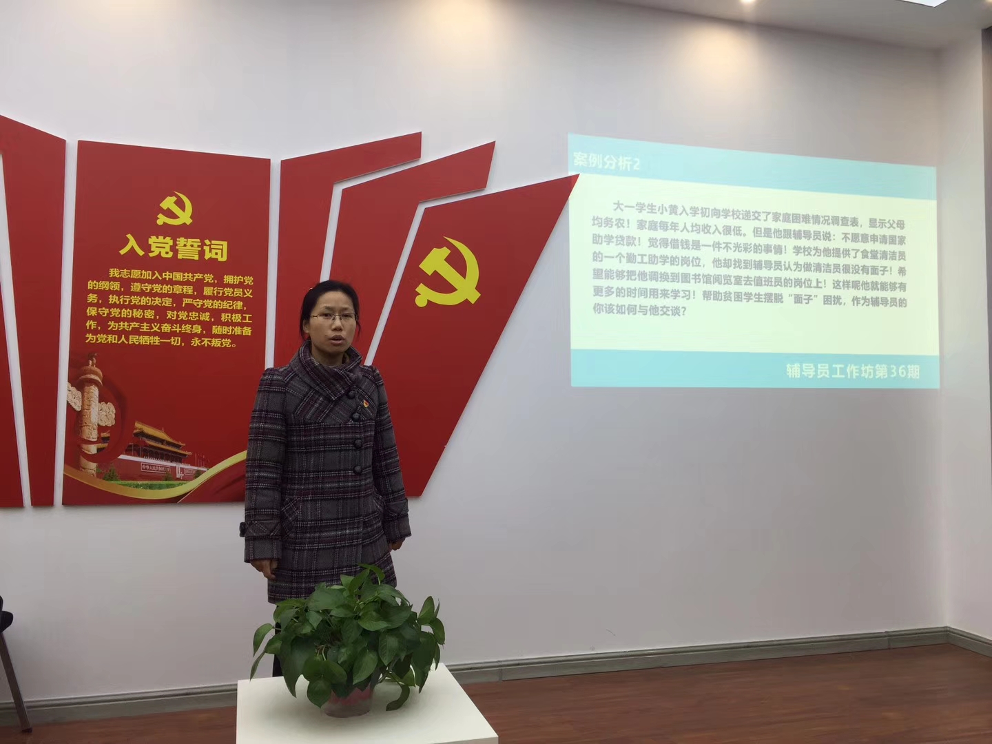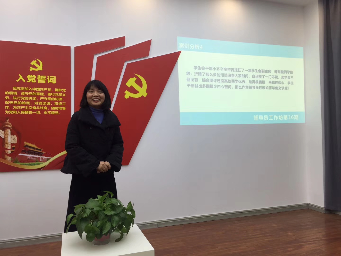 屋外寒风凌冽,屋内温暖如春,热烈的讨论和掌声笑声此起彼伏,2019年11月25日晚7点,云顶国际8588yd“辅导员班主任工作坊”第36期:辅导员素质能力提升实践在北京路校区品学楼3325室温暖开讲。人文公司党委副书记、副经理李晓慧和云顶国际8588yd、人文公司辅导员参加本期工作坊,工作坊由建工公司党委书记韩飞主持。
