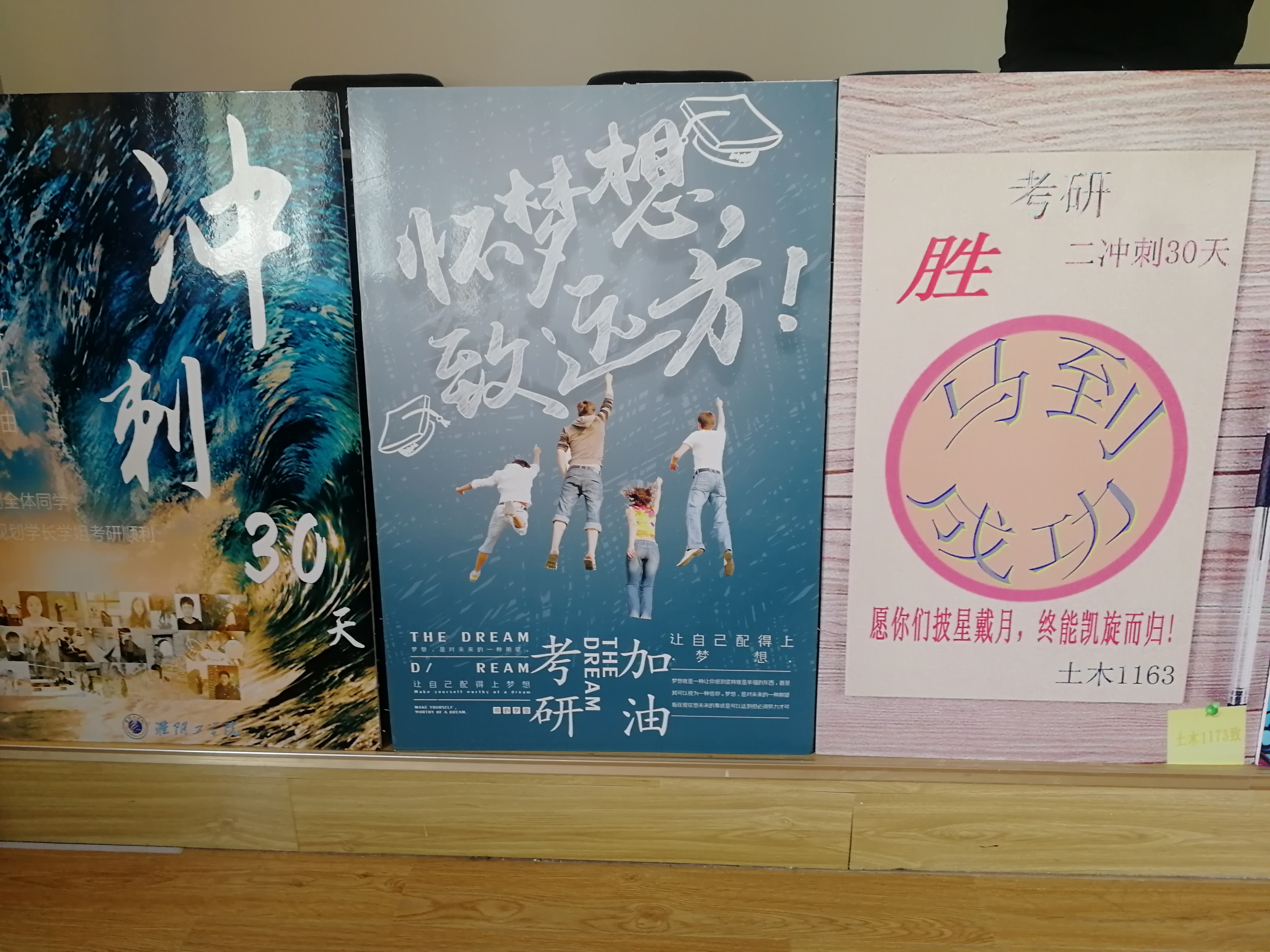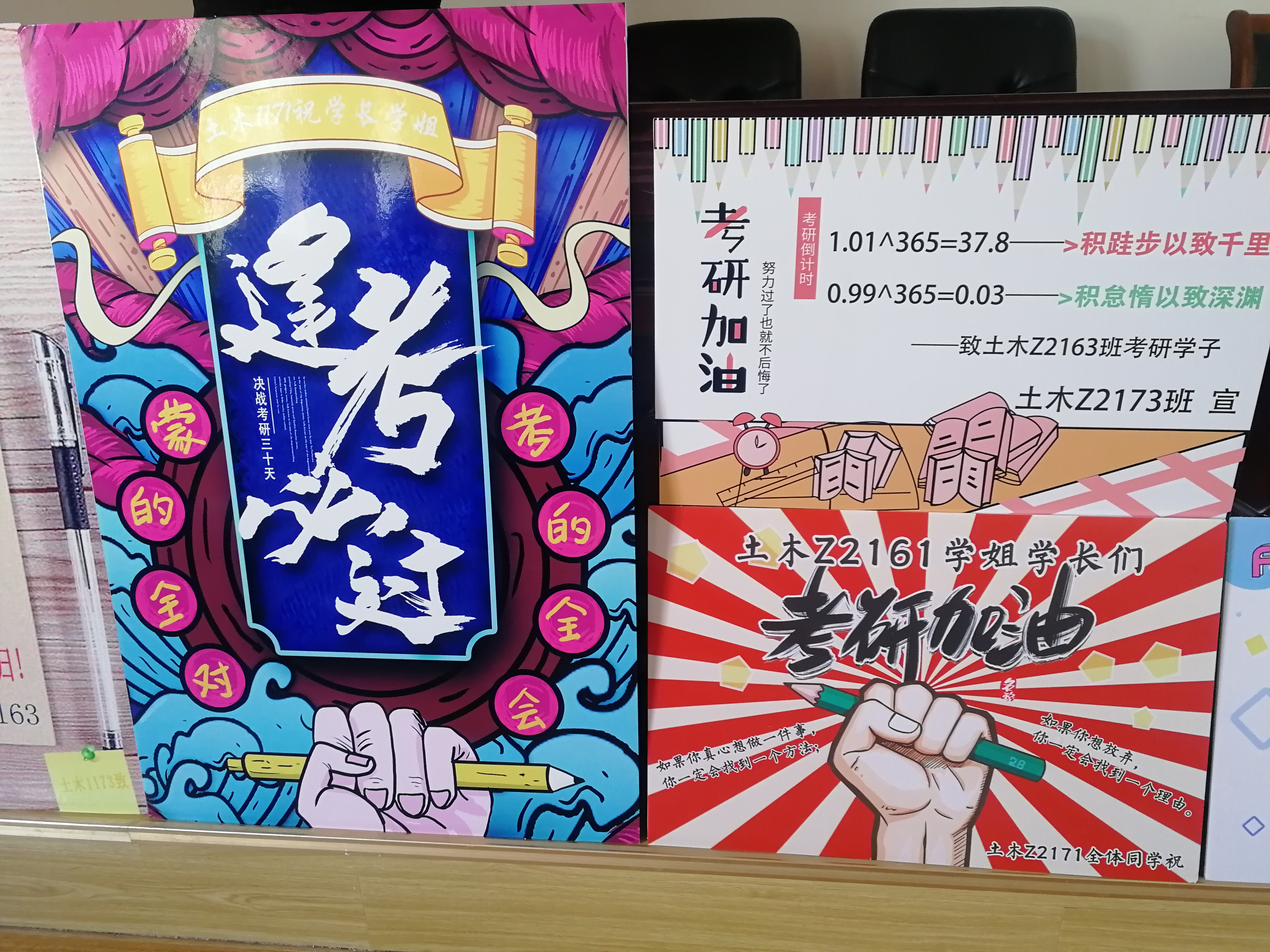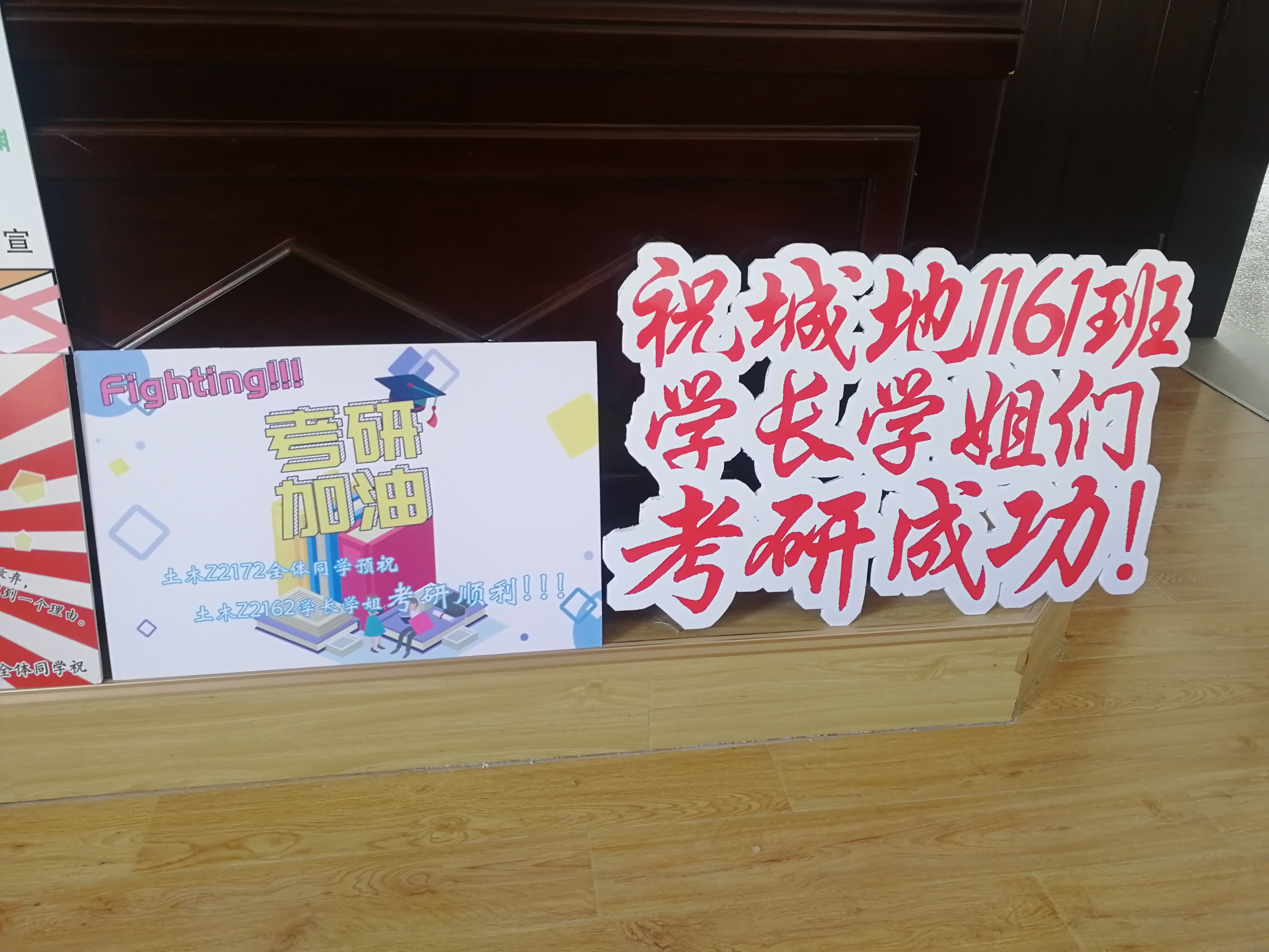 活动中公司低年级同学以独特的方式为考研的学长学姐送来了祝福,他们举起特地设计的展板送上内心最真挚的鼓励。