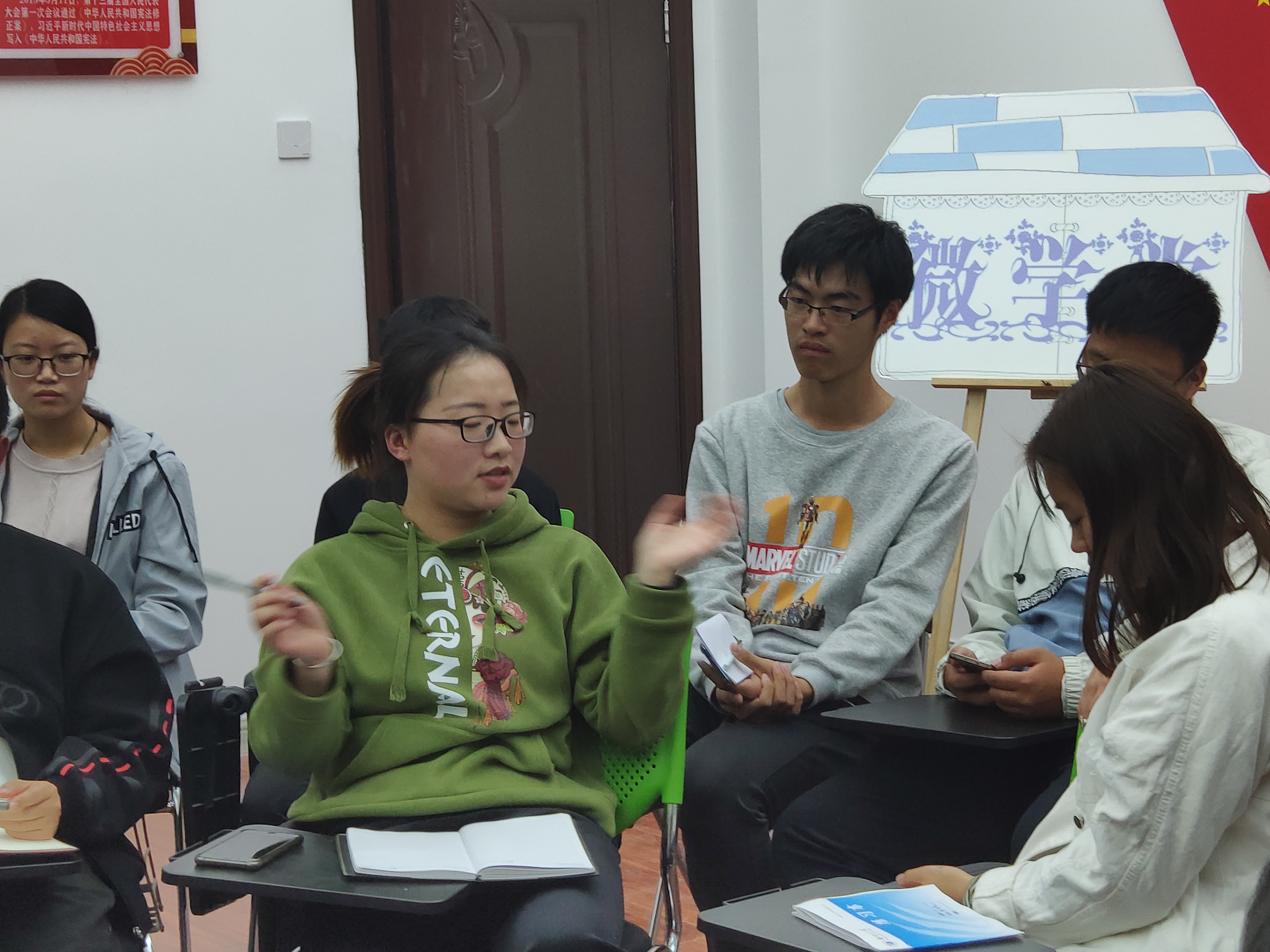 微学堂上,建筑学大五,正在备战考研的建筑1151陈欣荣同学分享了她大学四年的点点滴滴,她提到,大学我们要不断去尝试、不断去挑战,参加各类学科竞赛、社团活动和社会实践等,这对考研这一自我学习的过程有非常大的促进作用。她说大一大二有许多零碎的时间,将这些时间用来学习,也可以腾出时间去参加文体活动,增加生活乐趣,多去读书,广泛交友扩大自己的视野,丰富自己的人生阅历,时刻不能放松,积极做到最好的自己。