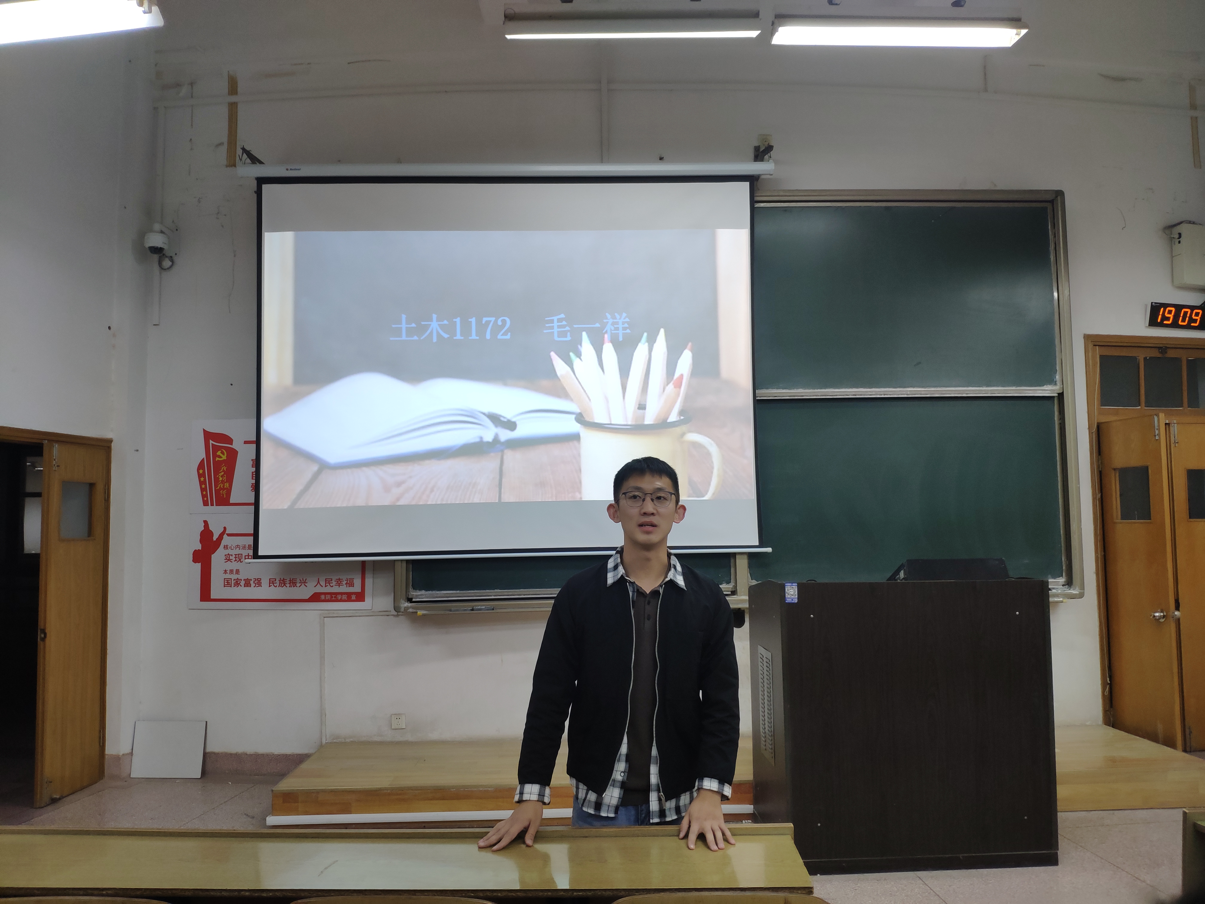 来自土木1172班的毛一祥同学,他一开讲便向在场听众展示他暑期科研方面的成果如稻壳灰,电石渣等,然后他叙述了它们在性能方面的实验及面临的一些困难和应对措施。他表示实验非常辛苦,这个暑假,七月在老师的带领和指导下进行实验相对来说比较轻松,八月老师出差,缺少这样的现场指导,他依旧坚持初心继续实验,尽管在此期间仪器出了故障依然尽力解决,突破障碍,砥砺前行。他说做实验虽然辛苦但挺有趣而且也拿出了成品。