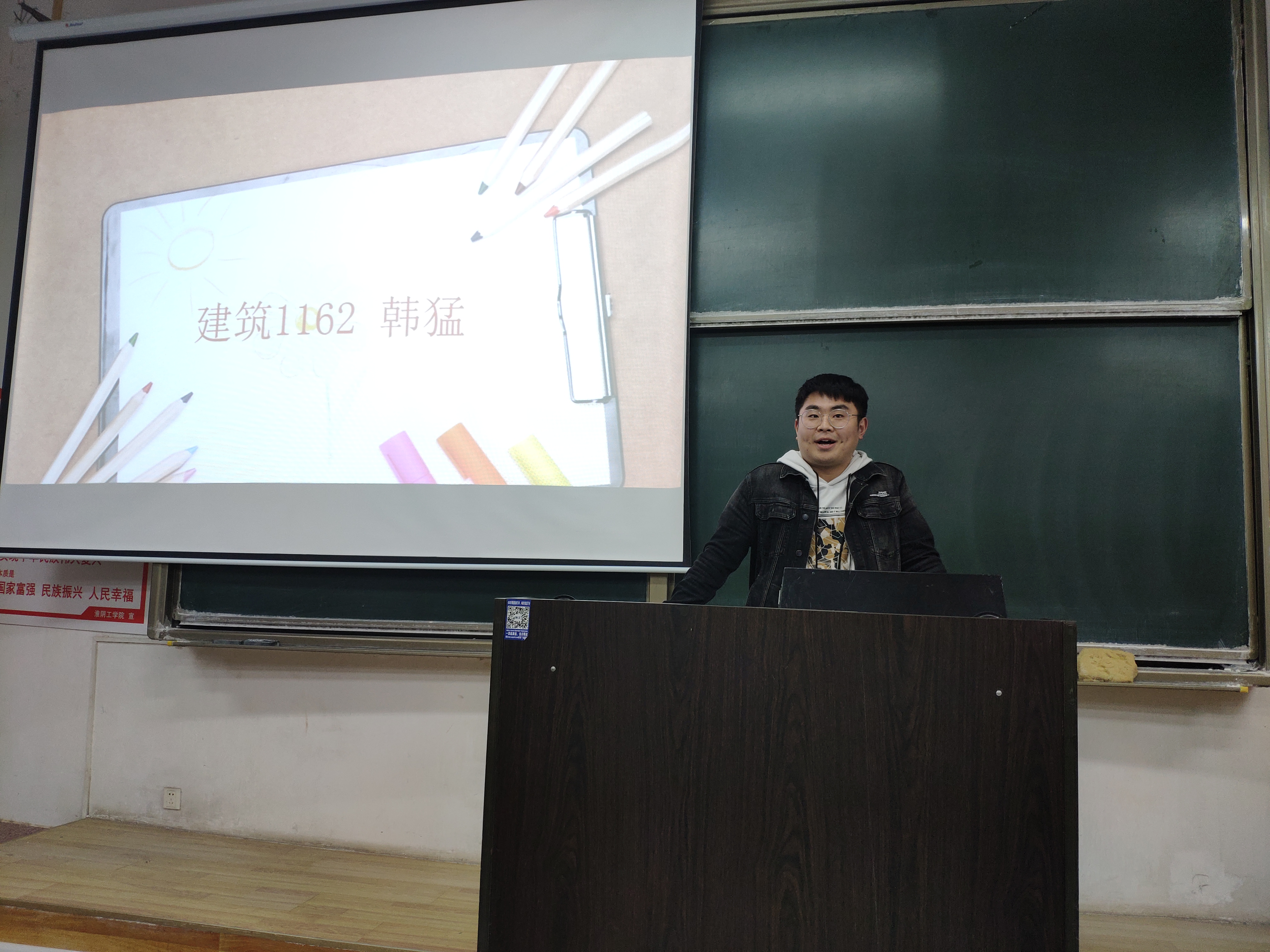 微学堂上,建筑1162班韩猛同学与大家分享今年暑假自己在西安的手绘方面的经历。七月,他基本上都在画图,学习比较苦闷且单调甚至有人熬不住退学了。他在那也结交了许多同学并且畅谈了关于学习情况方面的话题,得知他们学习情况比他还要超前点,因此可以与他们请教。他给出了一些关于老员工活如何度过的建议也鼓励在场同学多实践。