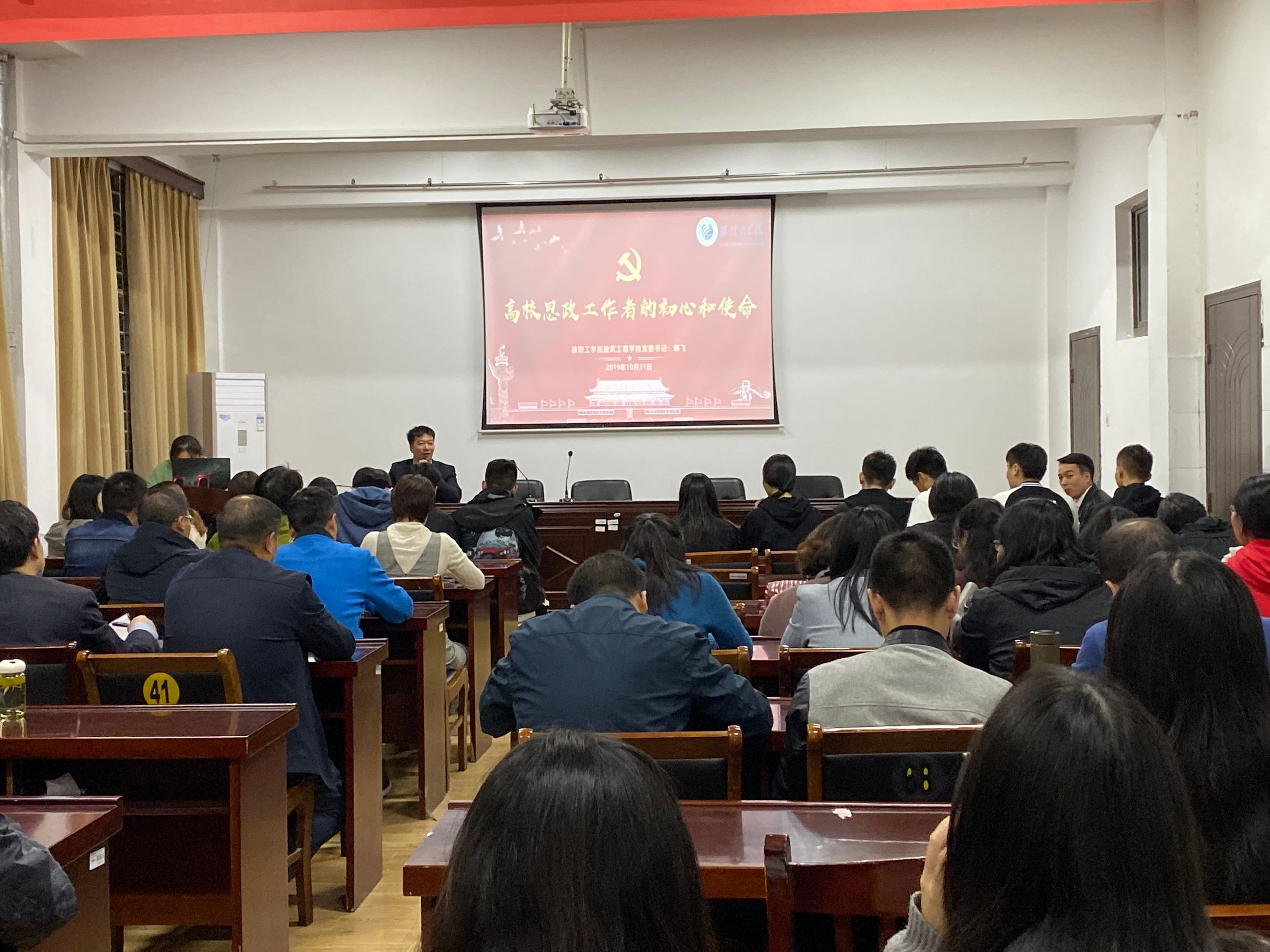 为扎实推进“不忘初心、牢记使命”主题教育,根据公司“不忘初心、牢记使命”主题教育实施方案和工作安排,建工公司党委于2019年10月31日晚7点在品学楼3304报告厅开展“不忘初心、牢记使命”主题教育主题党课。公司党委书记韩飞主讲《高校思政工作者的初心和使命》。云顶国际8588yd全体教师党员、员工党员参加了此次专题党课。