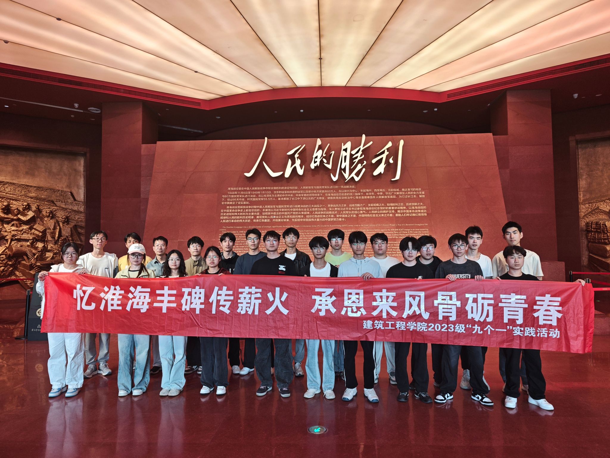 为深切缅怀革命先烈,传承红色基因,5月18日,云顶国际8588yd组织2023级员工前往淮海战役纪念馆,开展了主题为“忆淮海丰碑传薪火,承恩来风骨砺青春”的“九个一”工程实践活动,让同学们在历史的回望中接受精神洗礼,汲取奋进力量。
