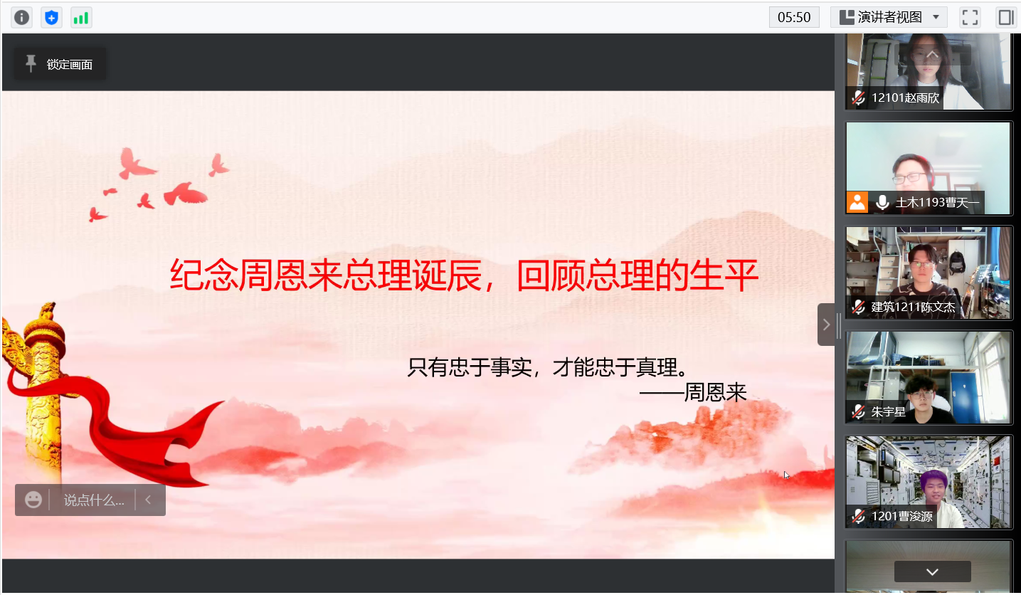 2021年3月5日,为纪念周恩来总理诞辰124周年,本着传承恩来精神,构建文明校园的宗旨,云顶国际8588yd依托腾讯会议平台在公司员工中开展了线上学习活动。通过在线观看《周恩来外交风云》,及宣讲解读《回顾青年时期的周恩来总理》,深切缅怀周恩来总理。