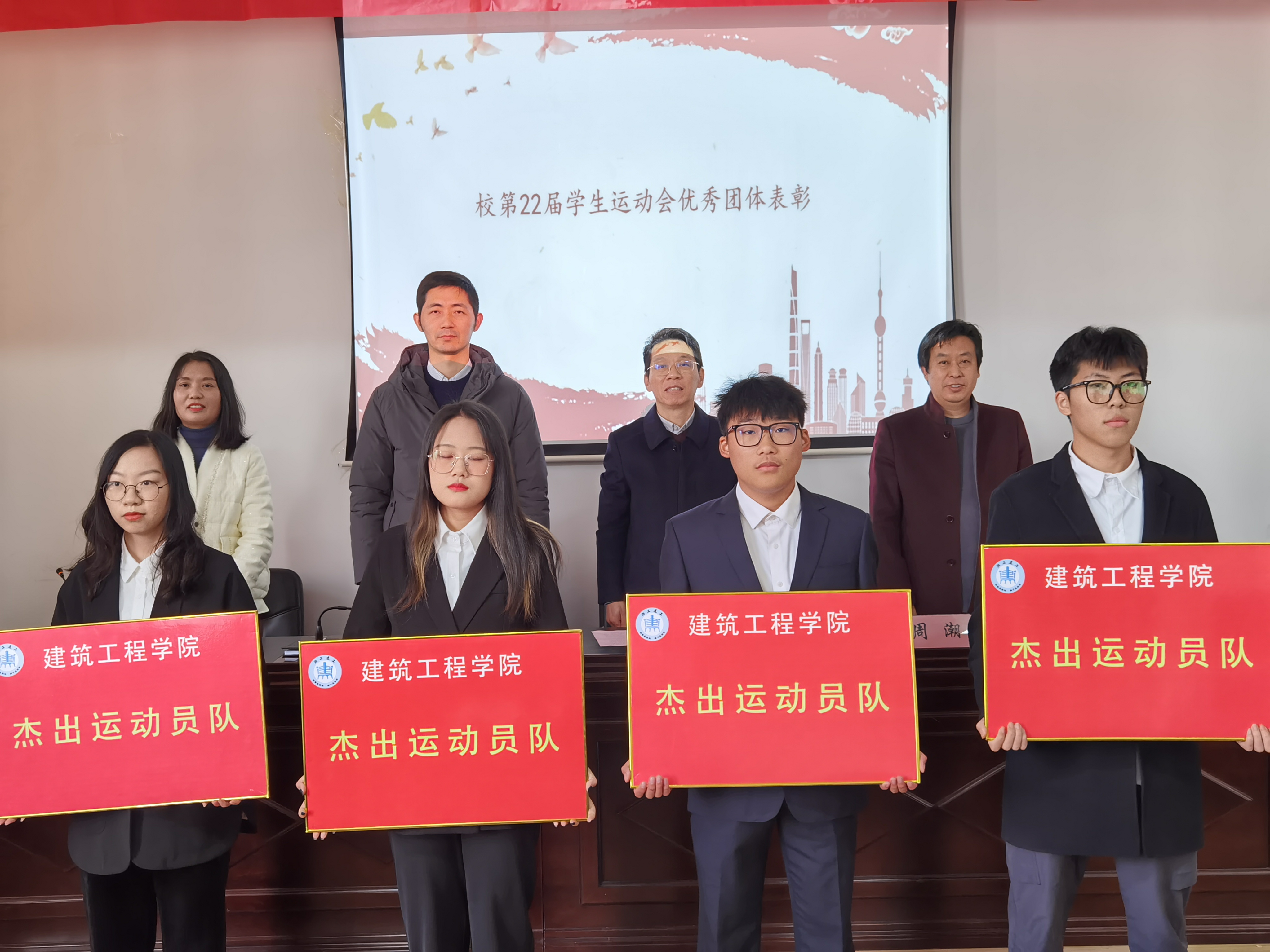 在颁奖环节,2021年江苏省三好员工李紫妍、优秀员工干部许志龙、云顶国际8588yd周恩来班建筑1181班员工代表、国家奖学金获得者周运、周劲草、校22届员工运动会优秀团体员工代表依次上台领奖。