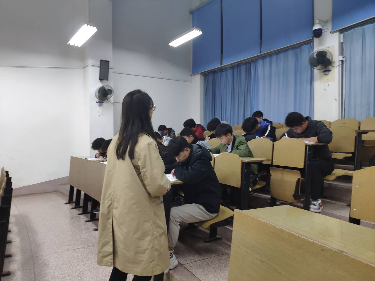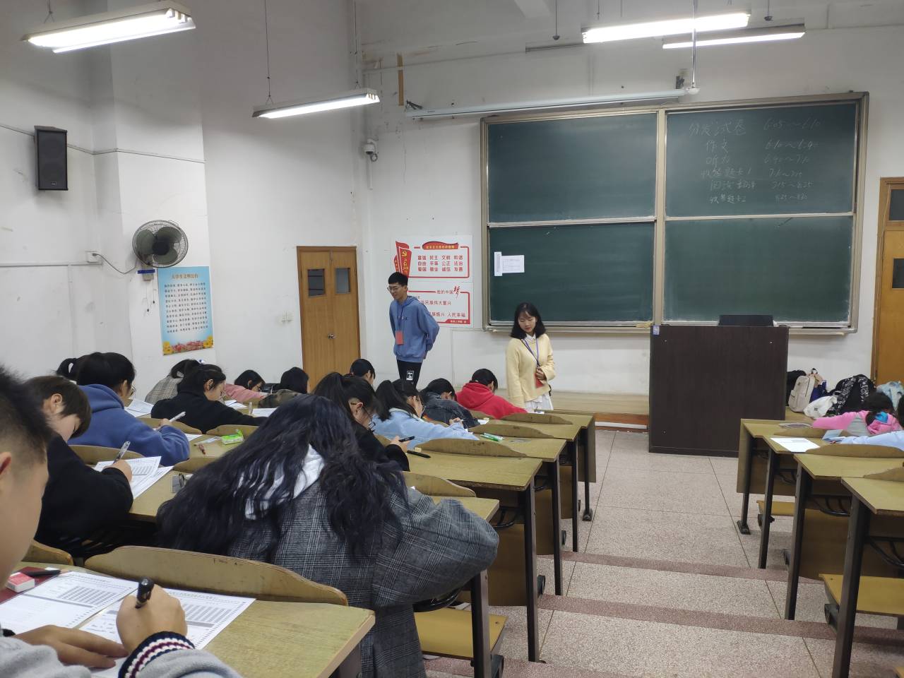 本次四级模拟由员工会成员负责监考。在考试开始前提醒19级同学检查考试工具与员工证,不许携带手机等通讯设施进入考场,严禁抄袭交头接耳等违规行为。一经发现违纪行为将立刻请出考场,全院通报批评。