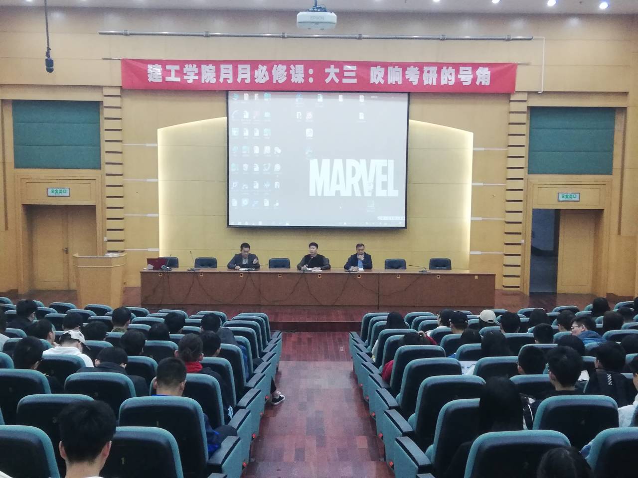 本次月月必修课,吹响了2017级建工学子考研号角,调动了建工学子考研的积极性,为建工学子考研之旅注入活力。