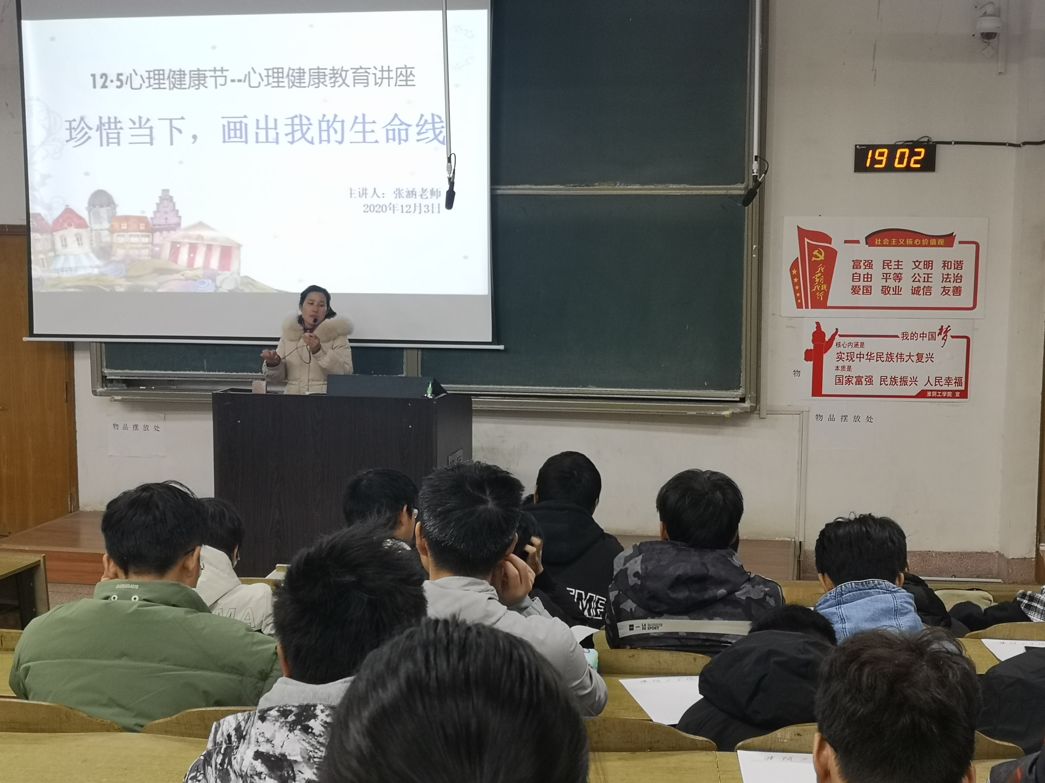 首先,张涵老师通过分析一个案例引入对生命的思考和领悟,接着讲解了生命线绘制的方法和步骤,生命线就是你人生的路线图,同学们在绘制的过程中体悟生命的底色和印记,回忆人生中的快乐与悲伤,同时对自己的未来进行思考和规划,从宏观上感受了自己的未来、梦想,并将梦想由远及近,将目标由大到小地进行分解,引导同学们对自己未来人生进行详细的规划。
