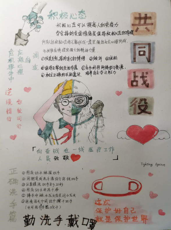 优秀参赛作品共有16幅,每一幅都特点鲜明具有战役色彩。心理战役绘画比赛有助于提高同学们对战疫英雄的认识,也更深刻的认识心理健康在挫折面前的重要作用。
