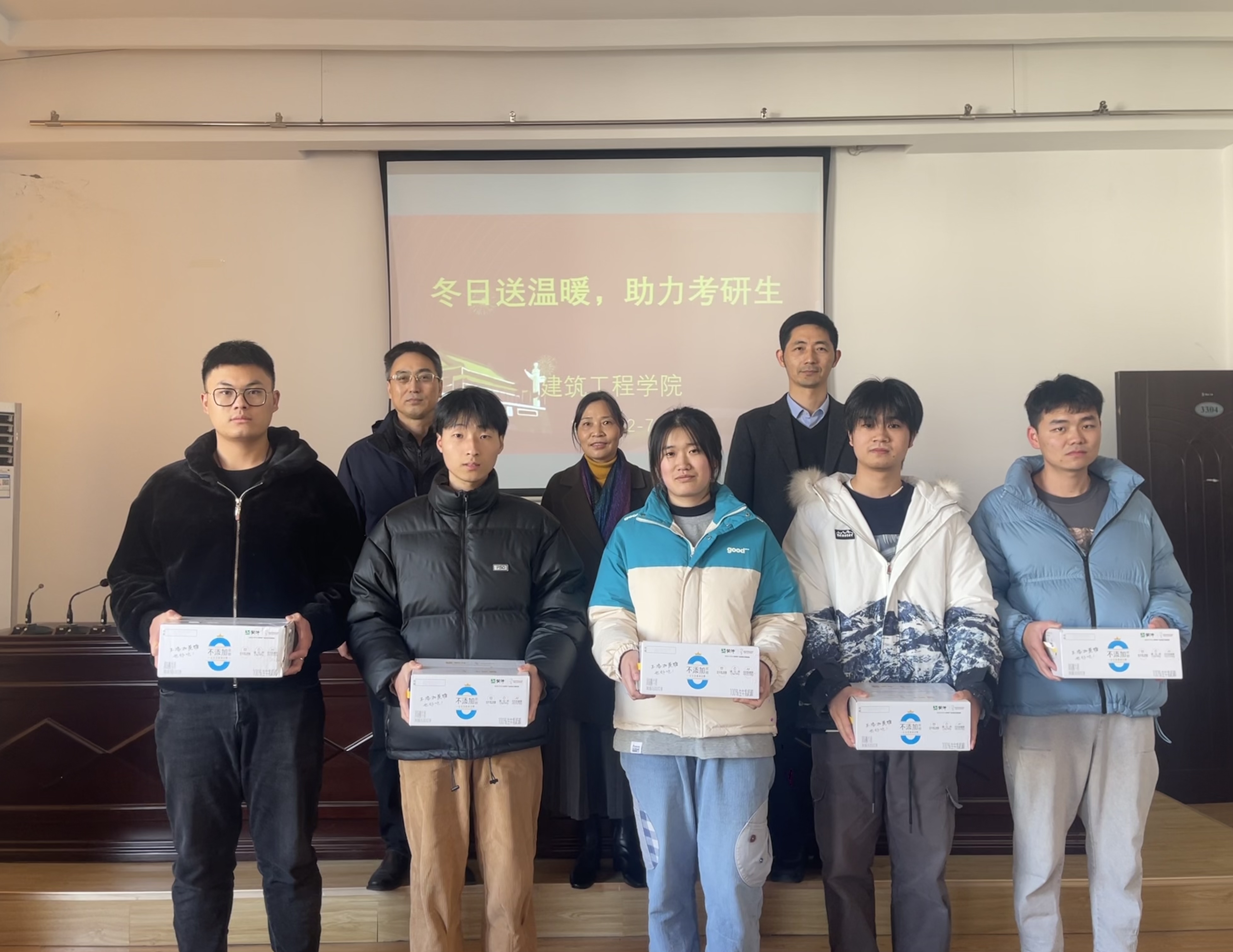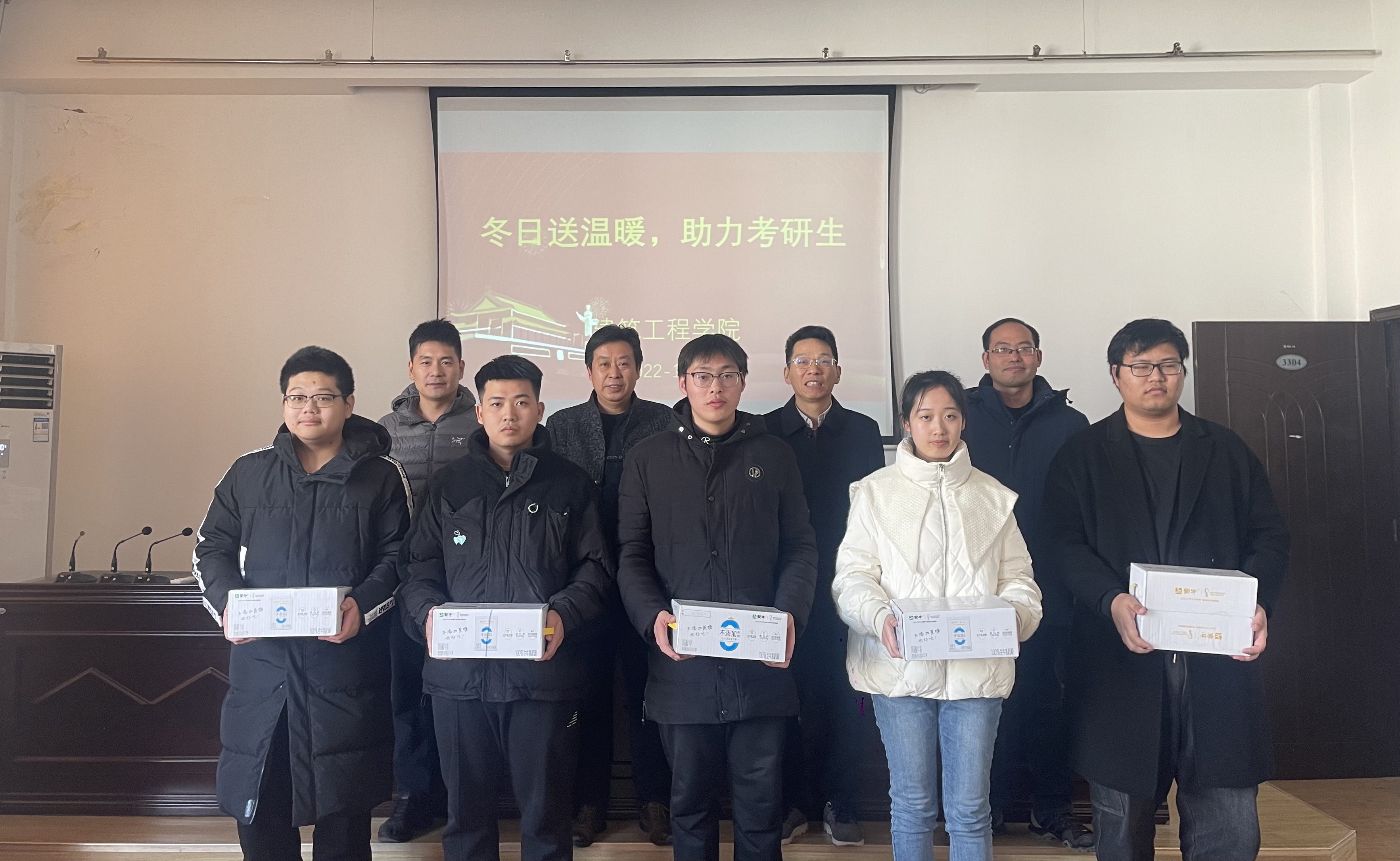 沈老师一边给同学们分发考研慰问品,一边叮嘱同学们,要注意身体,做好防寒保暖工作,劳逸结合,张弛有度。希望同学们在最后二十天里咬紧牙关,不负韶华。
