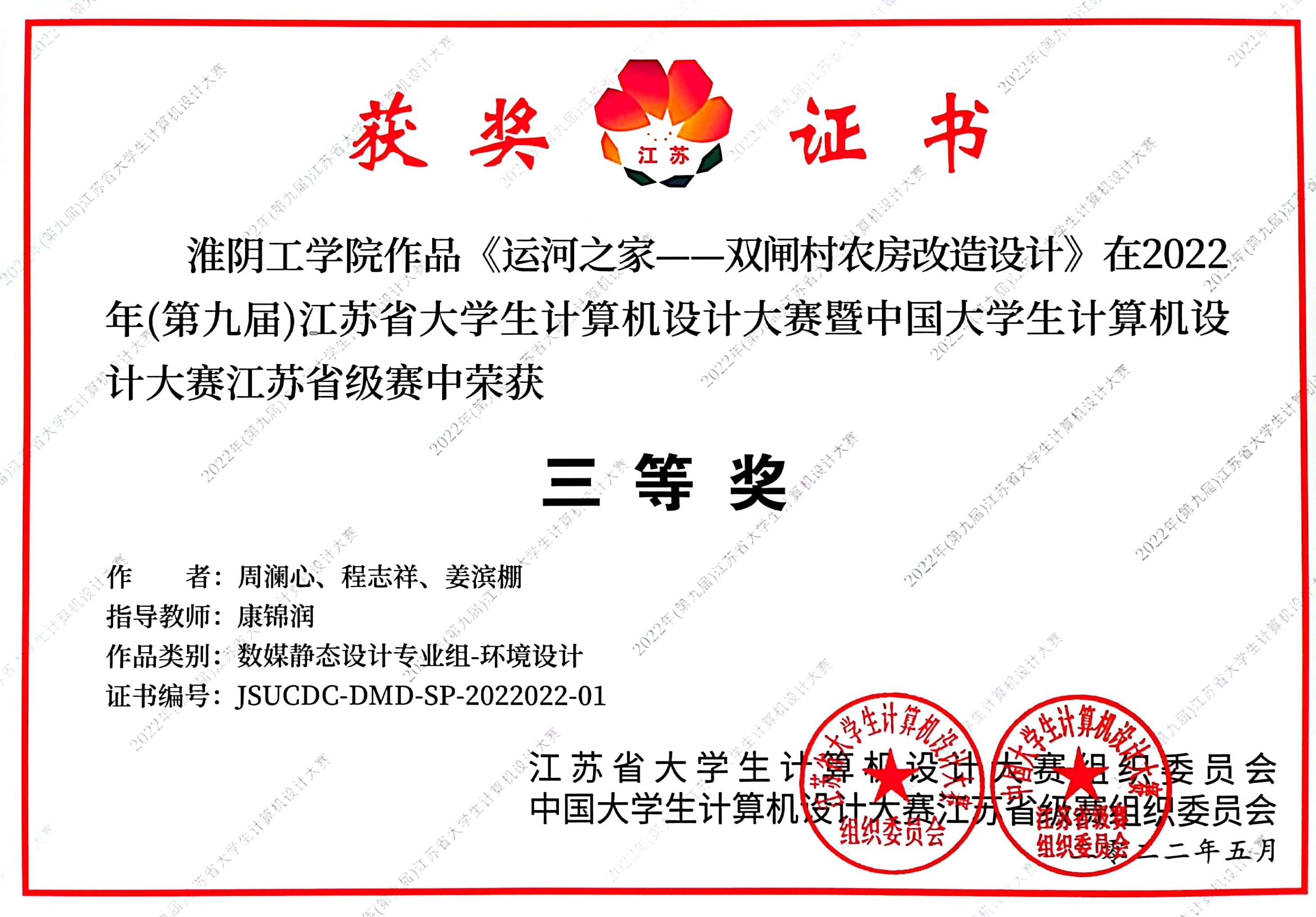 5月20日至21日,2022年(第九届)江苏省老员工计算机设计大赛暨中国老员工计算机设计大赛江苏省级赛举行。我院积极组织员工参加,第一次组织选送6件作品报名省级赛,有2件作品通过网评进入决赛,均获三等奖,作品被推荐参加2022年中国老员工计算机设计大赛全国总决赛。