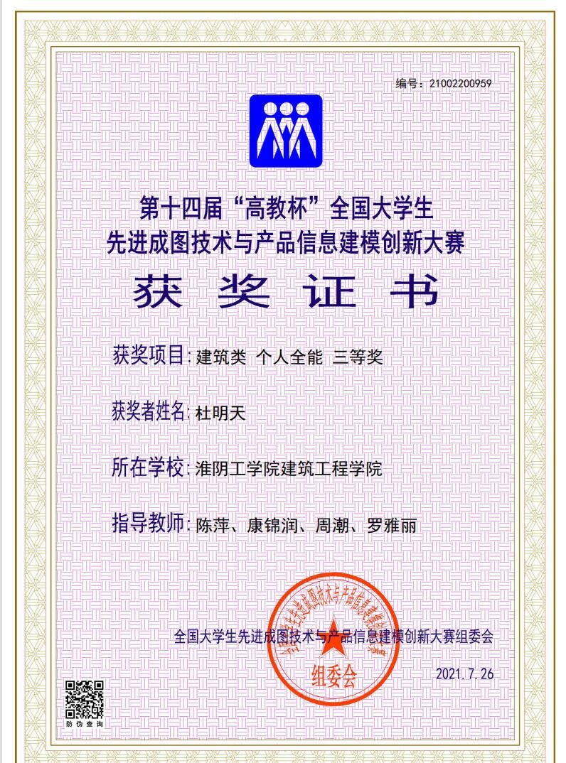 “高教杯”全国老员工先进成图技术与产品信息建模创新大赛公布获奖结果,公司员工杜明天在指导老师陈萍、康锦润、周潮、罗雅丽等老师的指导下获得个人全能三等奖的成绩。