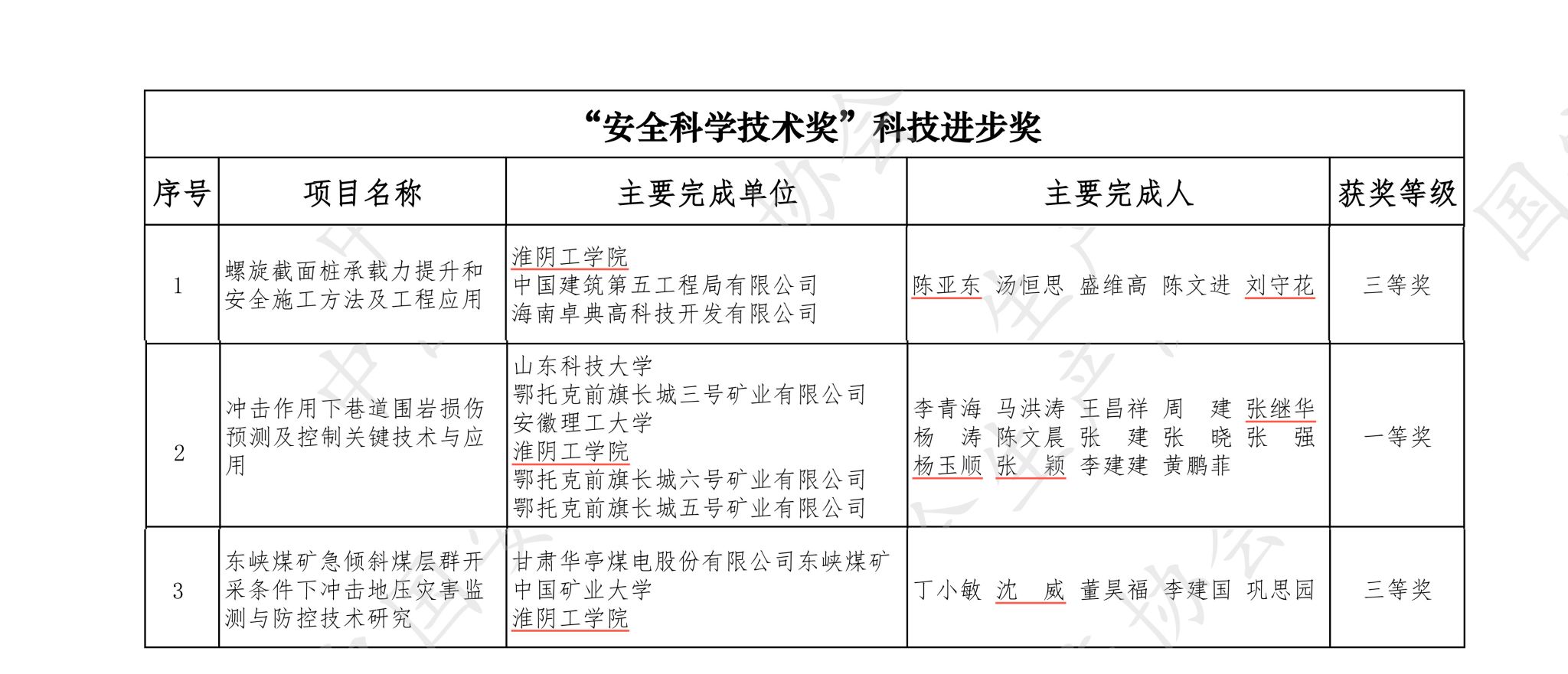 近日,中国安全生产协会公布了第五届安全科学技术奖获奖名单。云顶国际8588yd陈亚东教授主持的“螺旋截面桩承载力提升和安全施工方法及工程应用”项目获科技进步三等奖,张继华博士、沈威博士参与的“冲击作用下巷道围岩损伤预测及控制关键技术与应用”“东峡煤矿急倾斜煤层群开采条件下冲击地压灾害监测与防控技术研究”项目分别获科技进步一等奖和三等奖。此为公司首次获得该奖项。