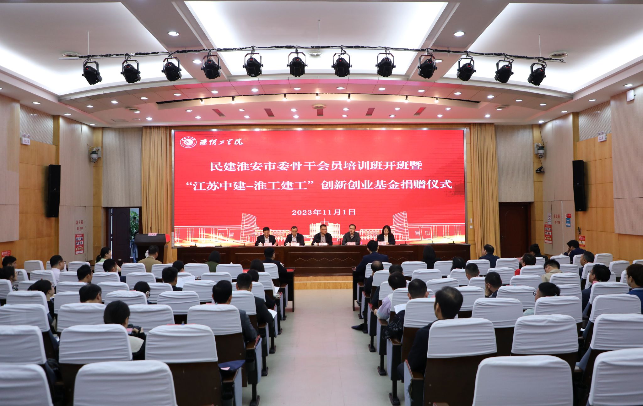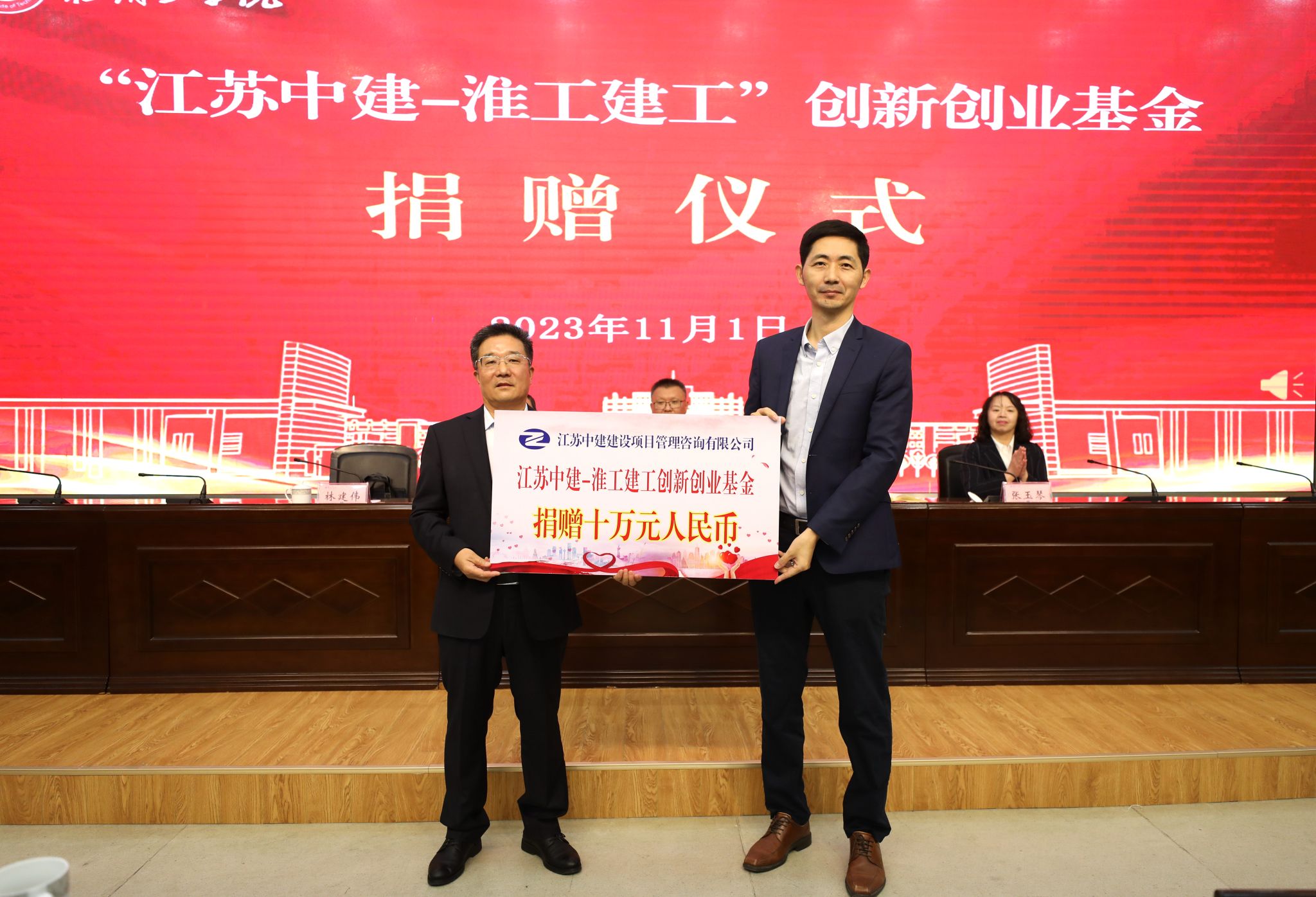 11月1日上午,“江苏中建-淮工建工”创新创业基金捐赠仪式在公司翔宇楼二楼报告厅举行。市政协副主席、民建市委主委韩文军,民建市委副主委、淮阴区政协副主席张玉琴,民建机关总支副主委、江苏中建建设项目管理咨询有限公司董事长林建伟出席会议。党委书记常绿致辞,党委副书记、副董事长吴建华主持会议。