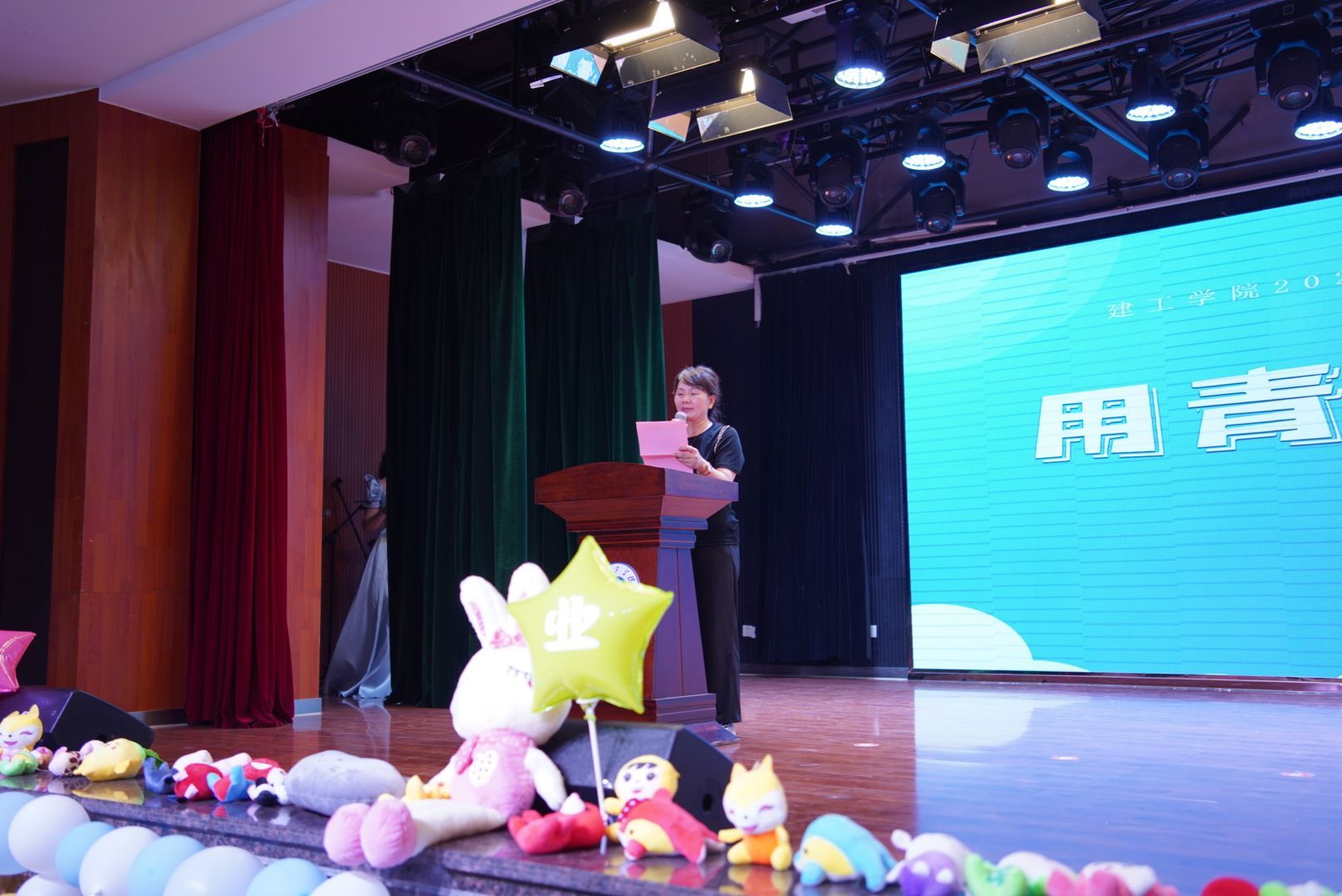 少年应有鸿鹄志,当骑骏马踏平川。晚会伊始,建工公司党委书记夏雪芹向2023届毕业生送上最真挚的祝福。夏雪芹希望毕业生们在未来能够做一名求真务实的建工人、踔厉奋发的社会人、志存高远的追梦人,不断超越自我,开启人生新篇章,鼓励他们勇往直前,用所学知识为社会做出贡献。