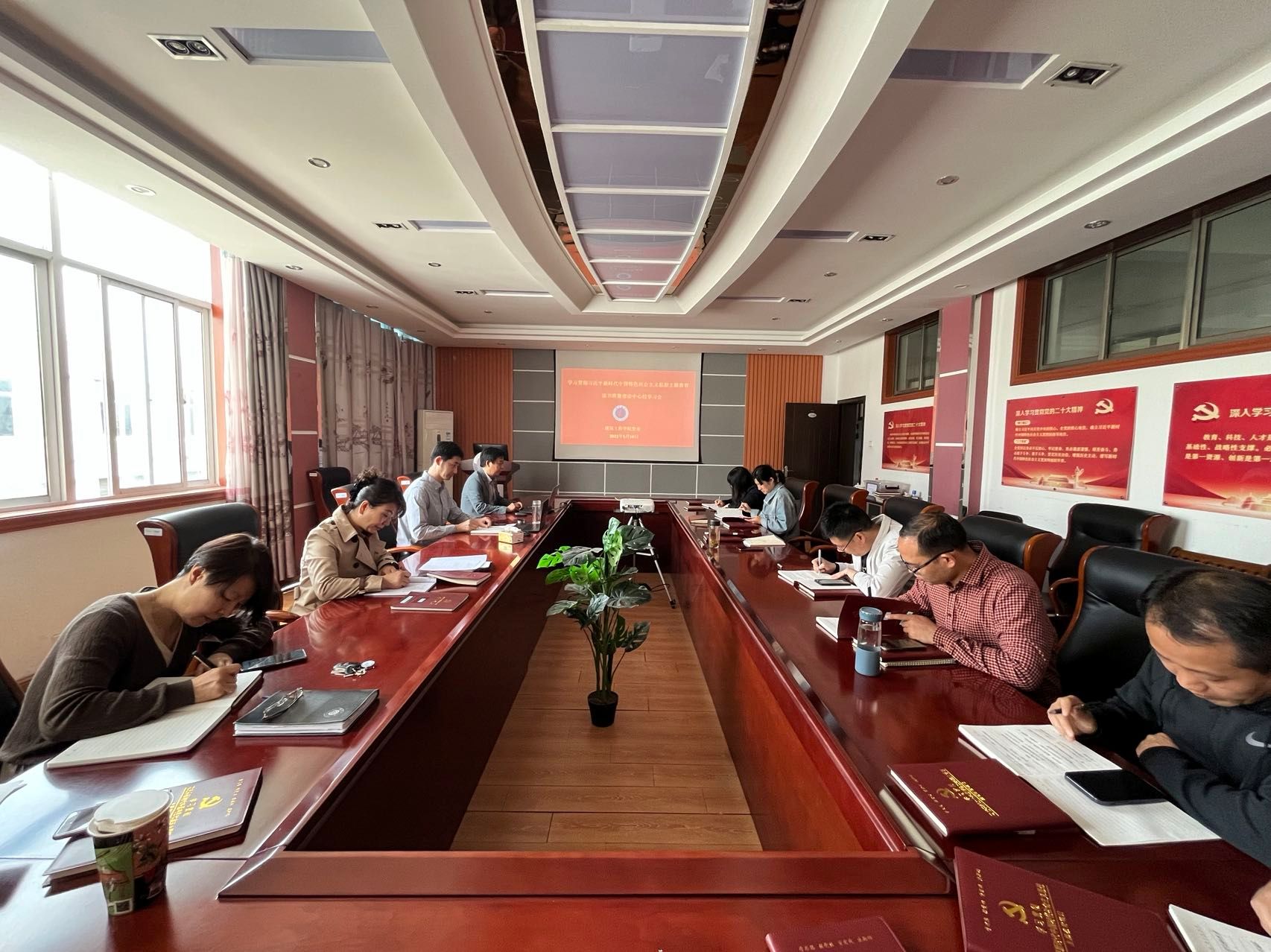 5月10日,公司开展学习贯彻习近平新时代中国特色社会主义思想主题教育读书班暨党委理论学习中心组(扩大)学习会,围绕专题进行研讨。公司党委书记、主题教育领导小组组长夏雪芹主持会议,本专题重点发言人为周潮和罗丽媛,领导班子成员、支部书记、系部主任、科级干部参加学习会。