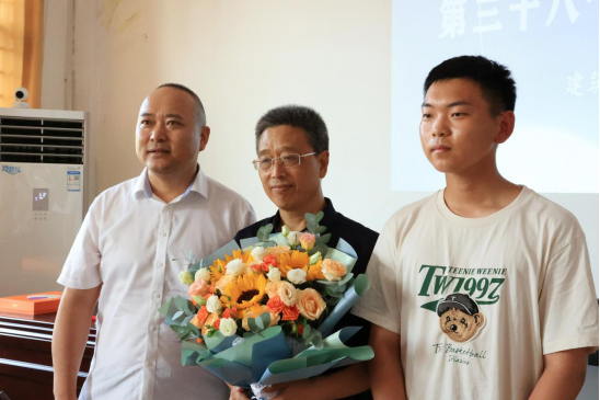 在活动现场,云顶国际8588yd大一新生周思成和他的父亲周峰一起,做了一件特别的事——给岳晨曦老师送一束花。周峰也曾在公司就读,他1993年入学,岳晨曦老师正是他的专业课授课老师。儿子周思成为今年入校学习的新生,父子俩相差29级,巧合得成为了师兄弟。看到员工的下一代秉承父业学习建筑工程,岳晨曦老师很是高兴,他说:“在教师节,能有两代建工人给我献花,我心情是无比的激动。教师是一个崇高的行业,要想做好一名教师,首先就是要在职业道德上提高自己,成为一名真正的职业道德合格的老师;其次是要提高我们这个业务水平,提高我们的业务能力,能够真正地把我们所学到的东西教给员工。”