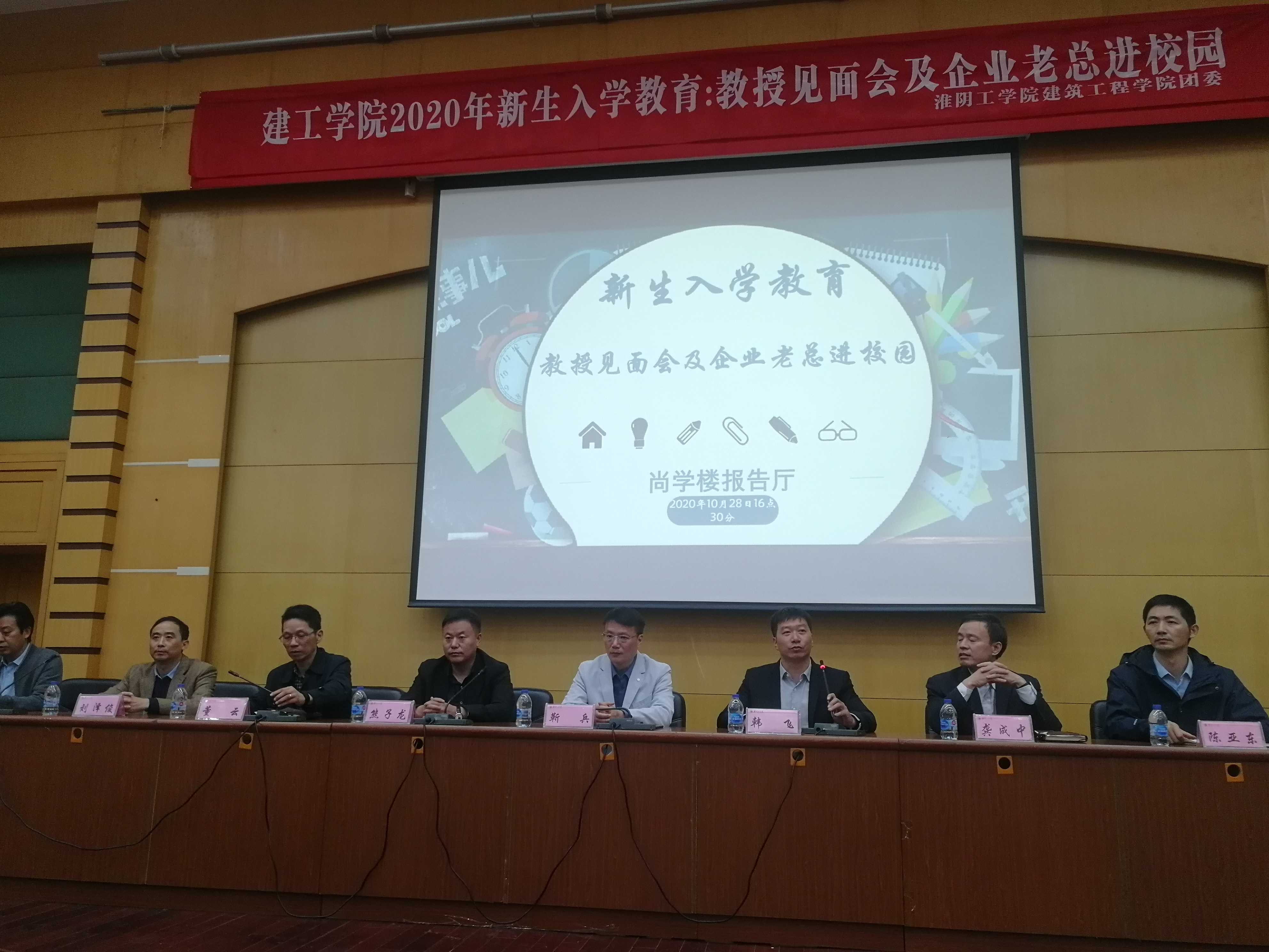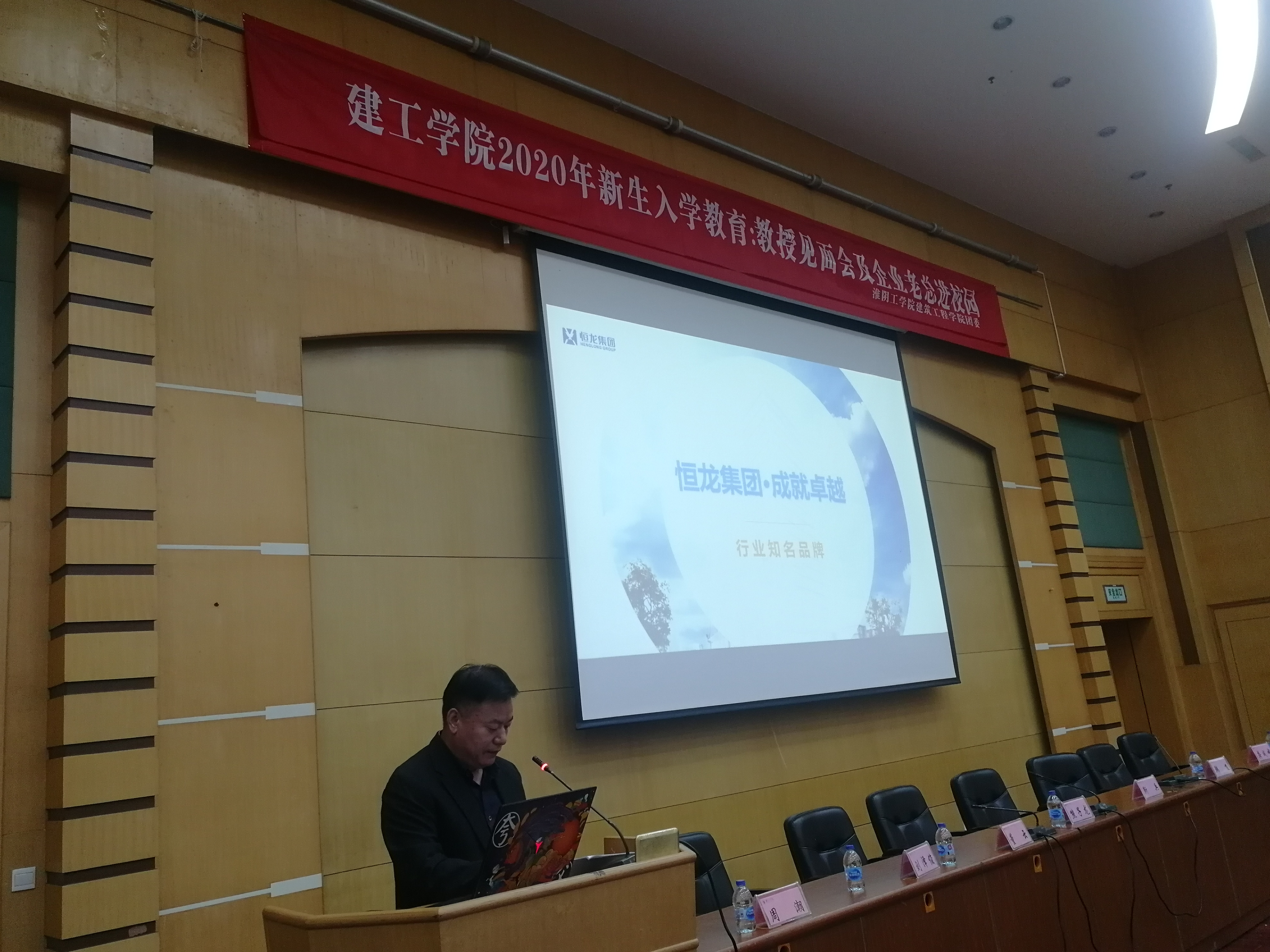 云顶国际8588yd于10月28日下午4点30分,在北京路校区尚学楼报告厅开展2020级新生入学教育:教授见面会暨企业老总进校园。出席此次活动的有恒龙集团创始人、总经理熊子龙、美城规划设计院董事长靳兵、建工公司党委书记韩飞、经理董云、副书记副经理陈亚东、副经理周潮、龚成中教授、刘择俊教授。2020级辅导员冯云平以及2020级新生参加了本次活动,活动由党委书记韩飞主持。