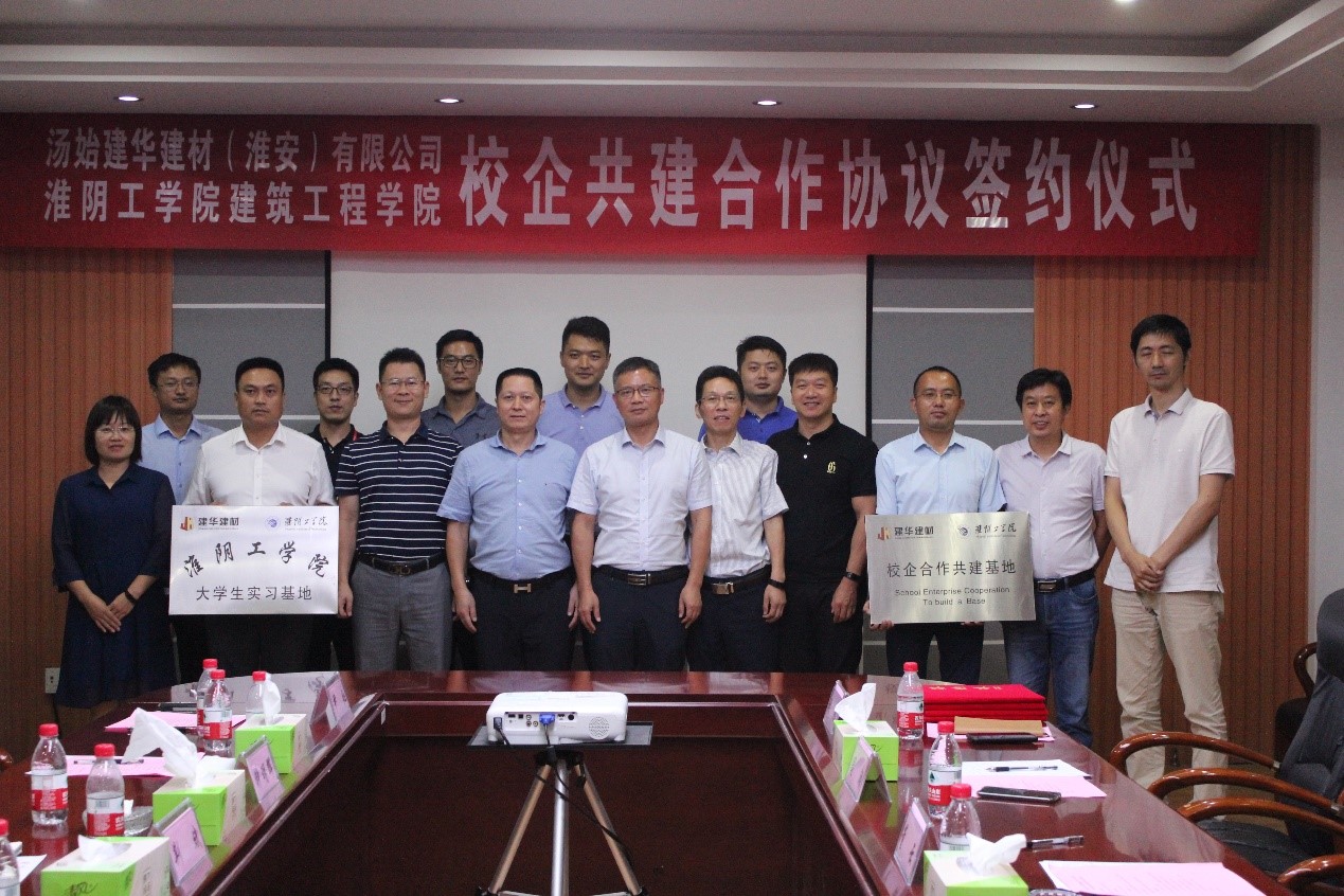 8月26日下午5时,公司与建筑建材(淮安)有限公司在品学楼3号楼3316会议室举行产学研合作交流会。副董事长张有东、建华建材苏北区域总经理刘先国出席交流会并讲话。