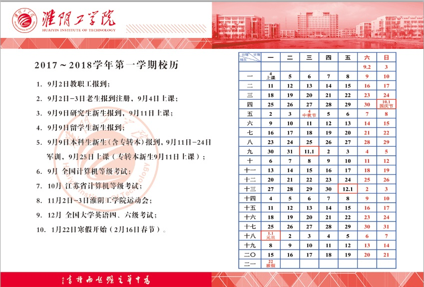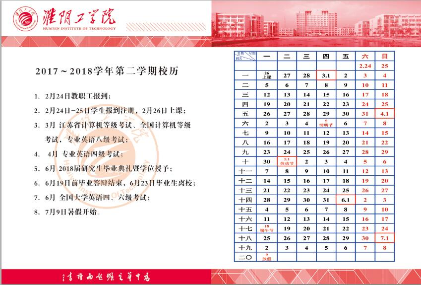 2017-2018学年校历