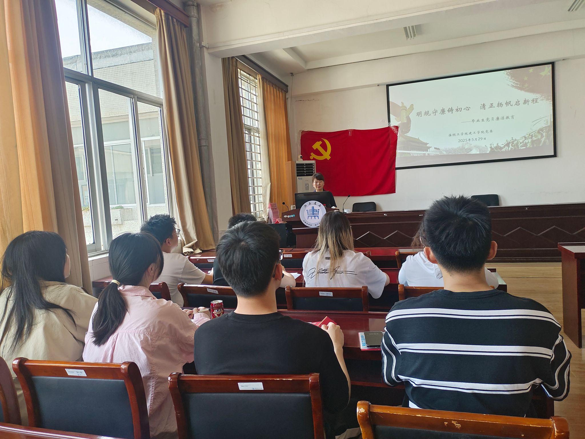 在2025届毕业生党员即将告别校园、奔赴青春新篇章之际,公司党委于5月29日组织开展毕业生党员廉洁教育专题活动。公司党委书记夏雪芹以“明规守廉铸初心,清正扬帆启新程”为题讲授专题党课,并代表公司党委向全体毕业生党员赠送饱含期许的“廉洁书信”。