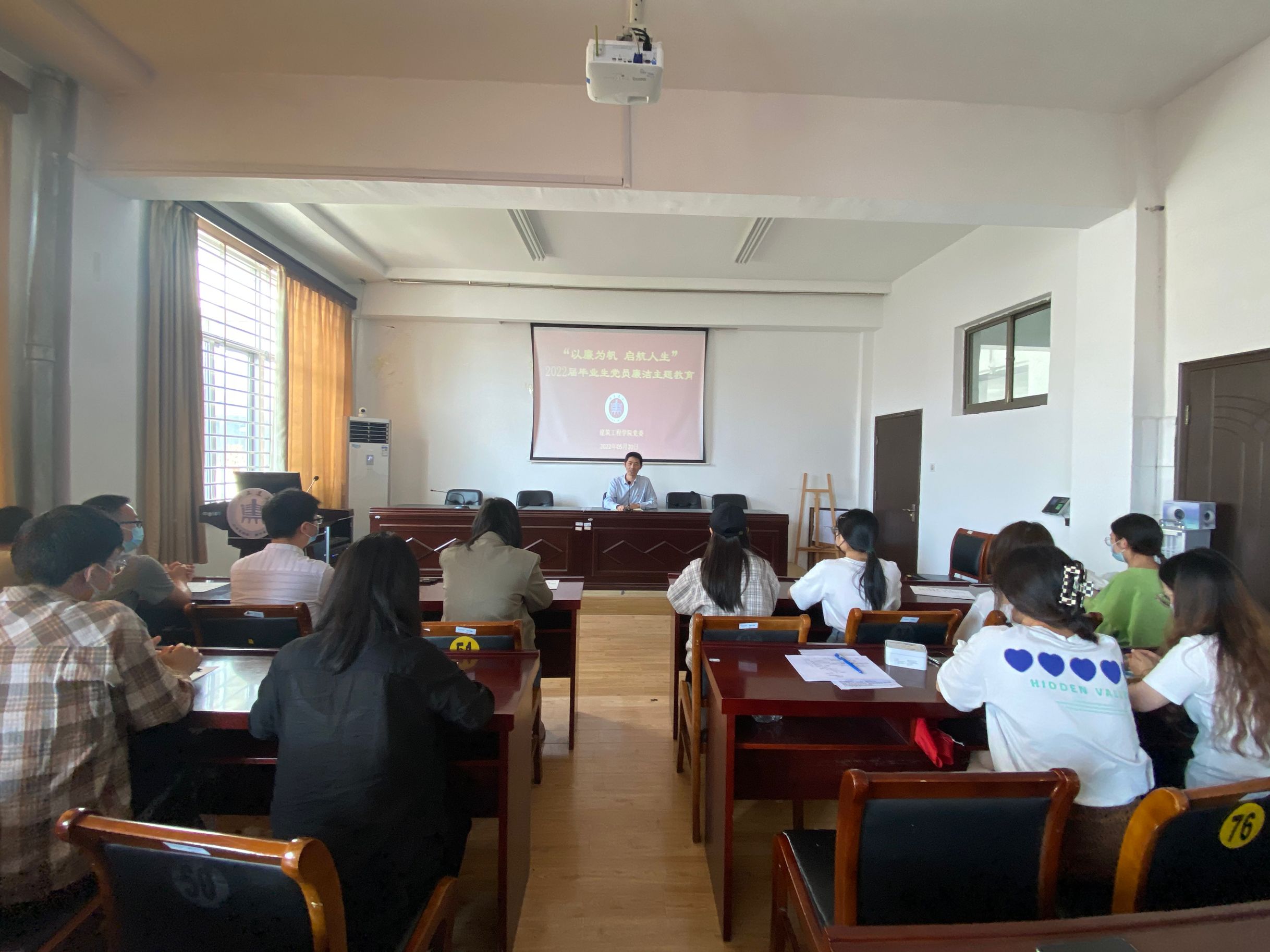 冯云平老师为毕业生党员上了一堂生动的廉洁党课,提醒毕业党员要有要有风险意识,走上岗位,把握好自己的人生;要有廉洁意识,廉洁从业一路同行。