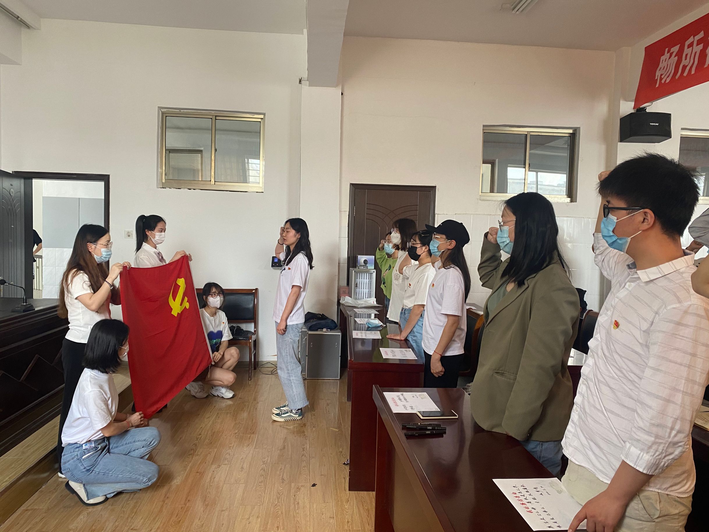 活动伊始,优秀毕业生党员陈丽君领誓,带领党员重温入党誓词。毕业生党员举起右拳,面向党旗,集体庄严宣誓:“我志愿加入中国共产党,拥护党的纲领,遵守党的章程......”牢记入党誓词,坚定理想信念。