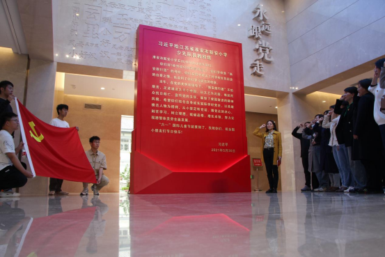 参观结束后,研学团在印有习近平总书记回信纪念墙前,公司师生党员面向党旗进行宣誓,重温入党誓词,再次用誓言点燃干事创业的激情。宣誓的声音回荡在大厅中,激励着师生党员铭记初心、强化使命、践行担当。